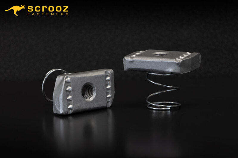 Designed to secure and fasten items to a metal channel strut, channel strut nuts feature grooves that engage with the slots in the strut, allowing for the easy sliding and positioning of the nut. Channel strut nuts have a threaded hole through the centre, while spring channel nuts include a spring beneath the threaded hole.