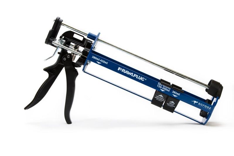 Professional manual dispensing system for resin anchors in cartridges. This heavy duty applicator tool is used for all 300ml - 600ml Rawl Plug chemical anchor cartridges.