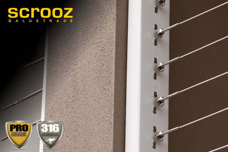 Scrooz high quality 3.2 mm pre-assembled stainless steel wire rope balustrade kits are designed for residential housing installation to give a professional streamlined finish to your verandah, patio, balcony or staircase. Each kit is supplied pre-manufactured to length (maximum 7m in 1 continuous run) using batch traceable and tested fittings which are hydraulically swaged (pressed) onto your wire, they are fast and simple to install and give you a superb factory quality stylish finish. Any quantity manufactured and shipped within 2-5 working days.